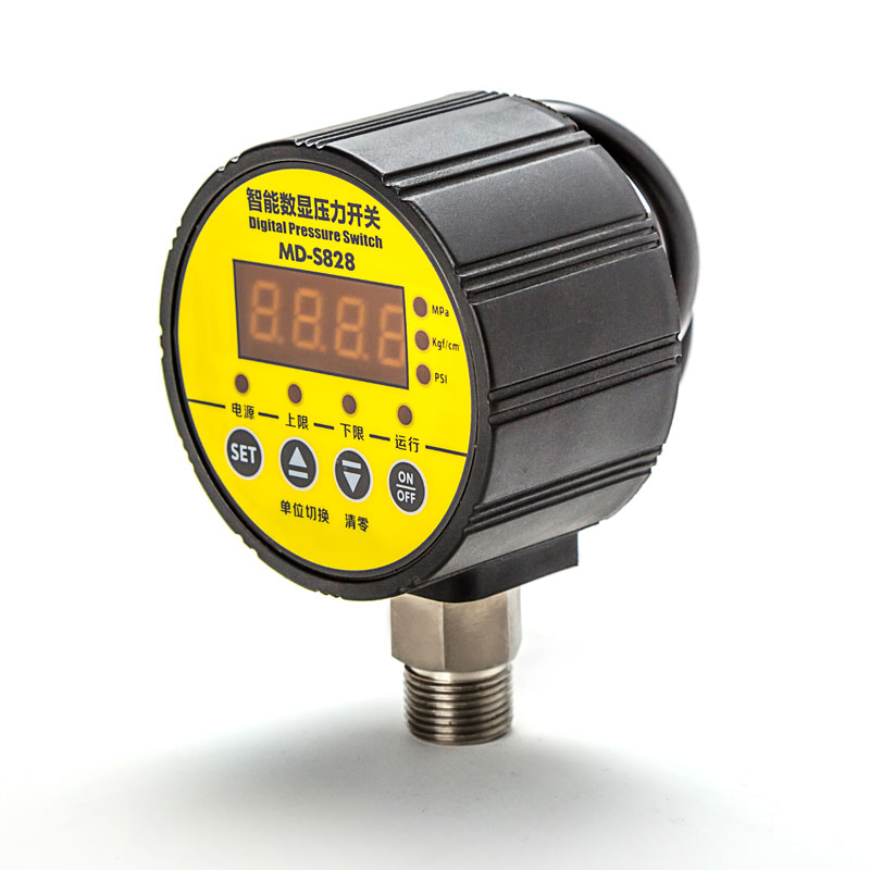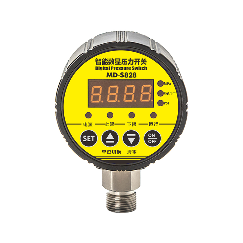 MD-S828是一款智能型數(shù)顯壓力開關,集壓力測量、顯示、控制于一體的經濟型數(shù)字式壓力開關。該系列壓力開關可設置兩路常開常閉報警點,也可實現(xiàn)兩路高低壓控制,另外具有一鍵清零,三種顯示單位切換等多種功能。