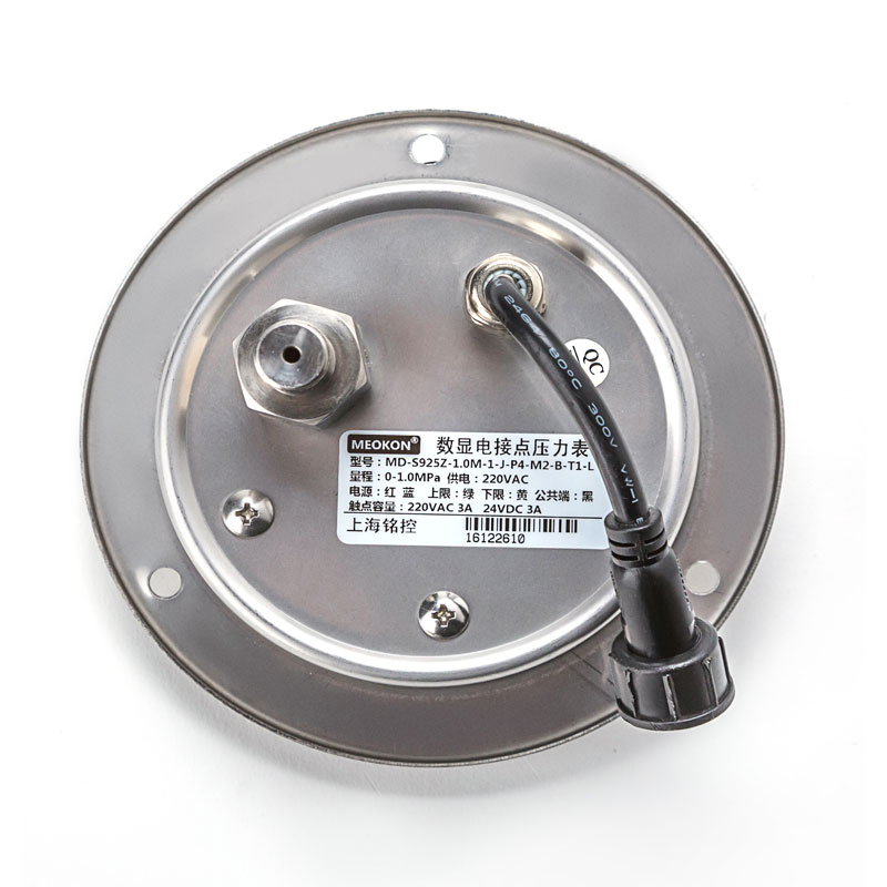 直徑100mm,軸向帶邊安裝,304不銹鋼外殼。 內(nèi)置繼電器,接線方法同電接點(diǎn)壓力表,多種輔助控制功能。
