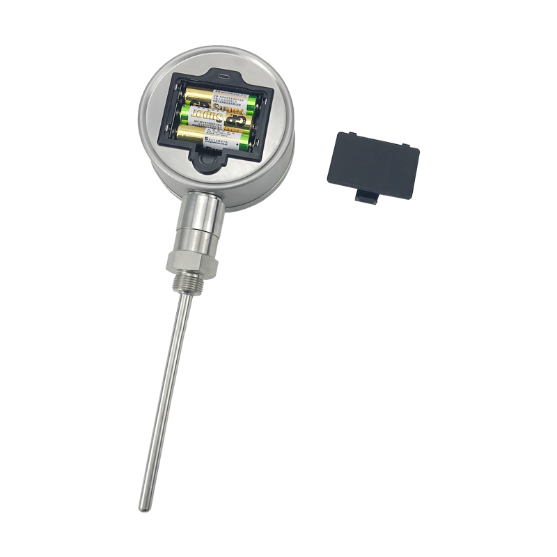 100mm超大表盤,55x55mm超大液晶5位顯示,溫度精度高,低電報警、單位切換等多種輔助功能,探頭長度及螺紋,溫度量程可定制
